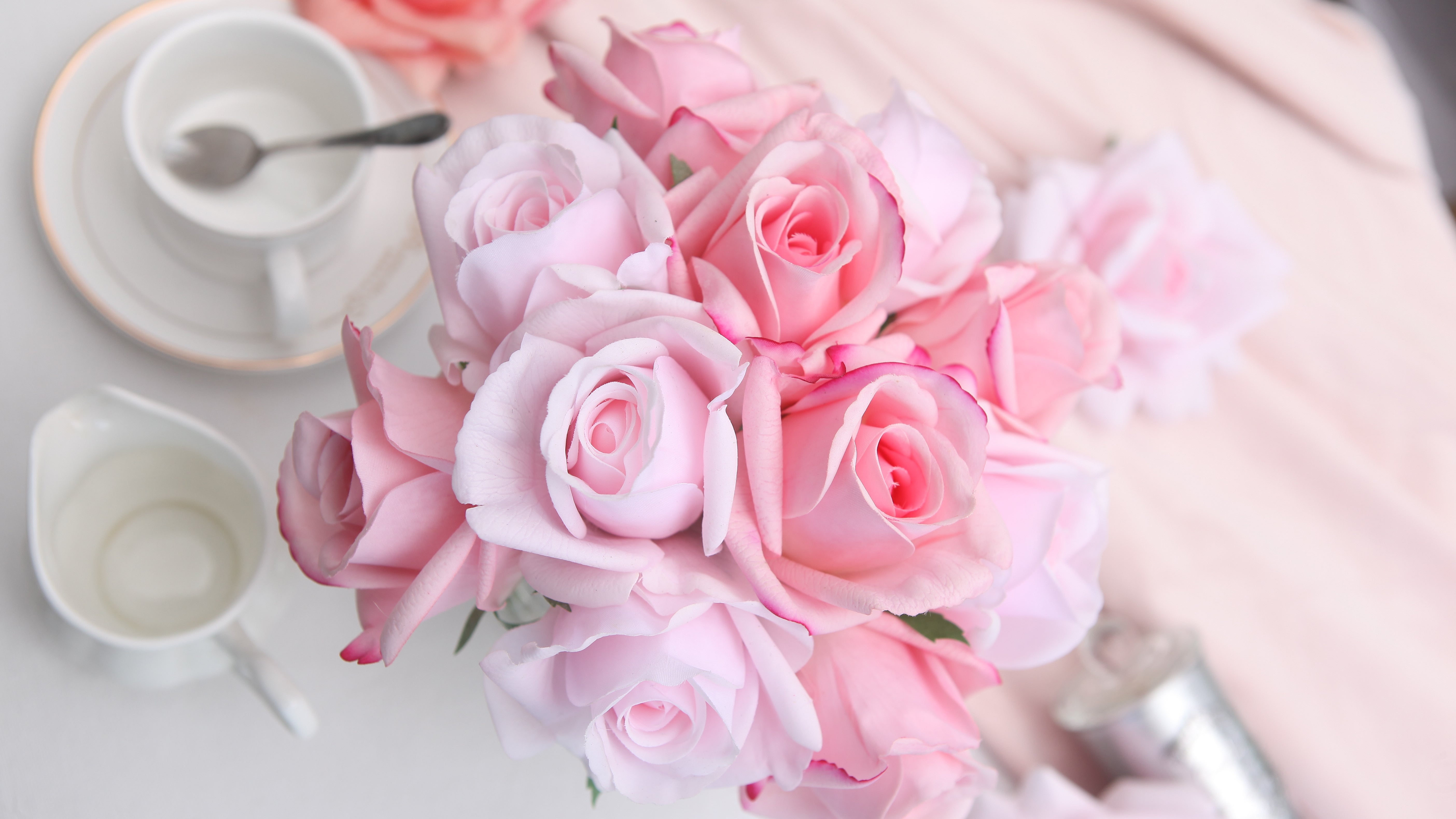 ** CLEARANCE ** Cote Noire Perfumed Natural Touch Tea Roses - French Pink in Pastel Pink Vase - LS43
