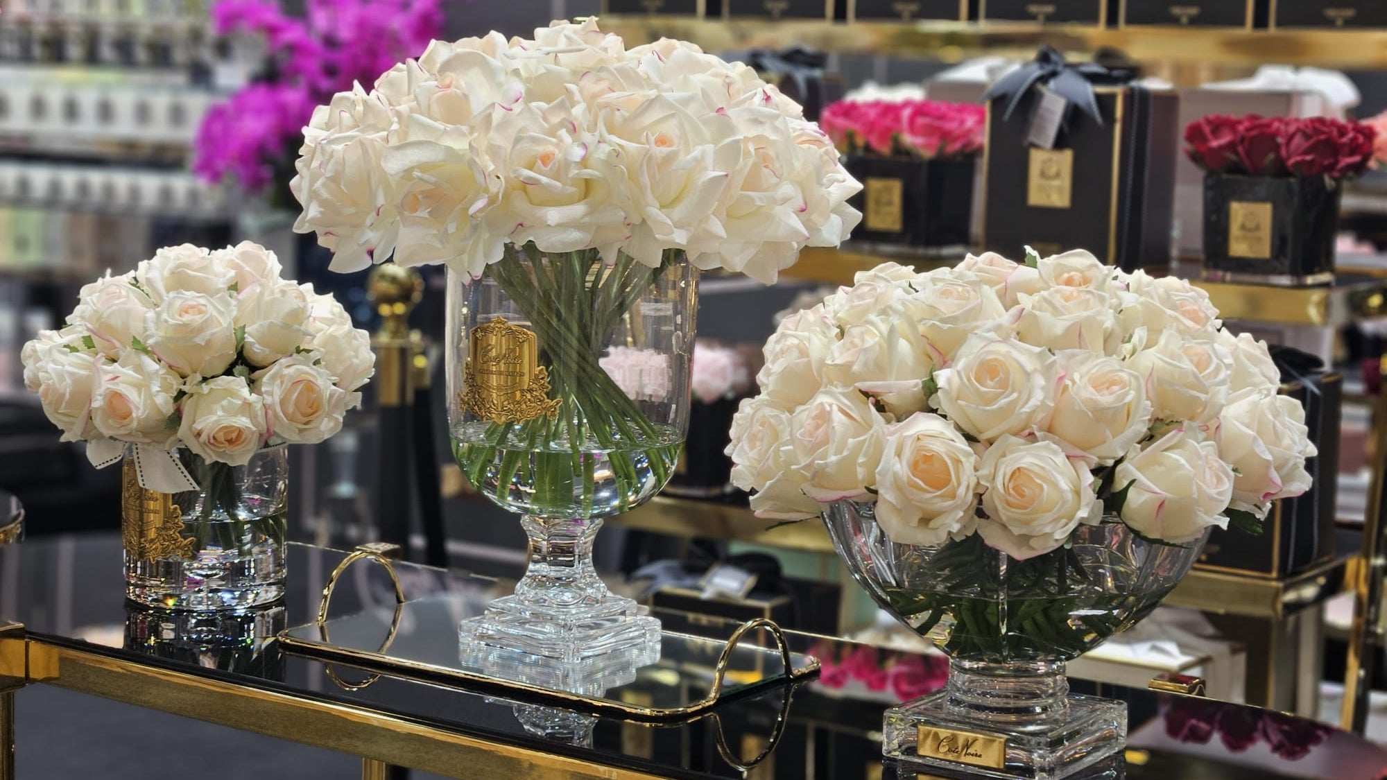 Each life-like perfumed Centrepiece Rose Bud Bouquet has been skilfully hand crafted and set in a water-like gel. Each petal has a special natural coating to give the arrangement a true to life touch & appearance. Includes thirty-seven rose buds arranged in a luxury vase with a gold Cote Noire signature badge.